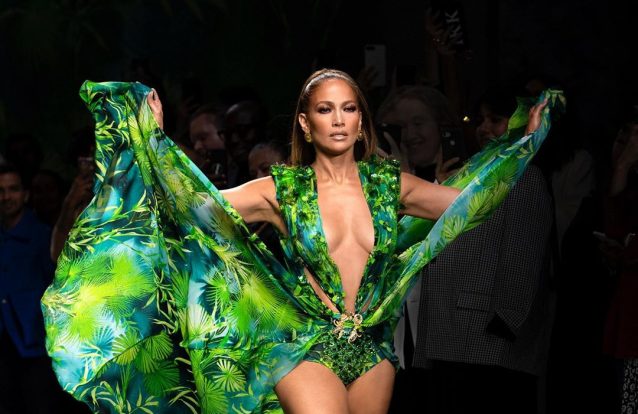 Jennifer Lopez arrasa ao voltar a desfilar com mítico vestido da Versace