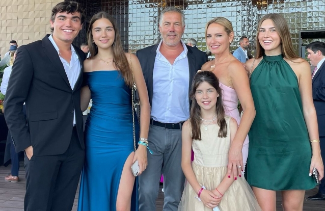 O ex-casal posou na companhia dos quatro filhos num casamento