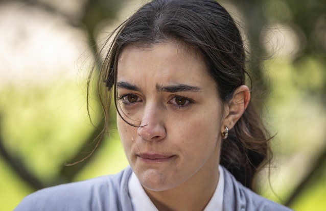 Todavia, David continua ajoelhado e mostra-lhe uma caixa de bombons. “E chocolates! Mas tu achas mesmo que te limpas?”, questiona. Ele diz-lhe para a abrir e ela diz que não consegue, pois está amarrada. O advogado abre-a então. “Tinha pensado em adiar isto até uma altura em que não houvesse tanta confusão na nossa vida, mas agora sei que estava enganado. Porque venha o que vier, as coisas boas e as más, eu sei que quero passar por tudo isso contigo”, declara-se, levantando a tampa. “Não há nada na minha vida que seja melhor sem ti. Casa comigo”, pede-lhe. Emocionada, ela aceita. “Sim, eu caso contigo… Mas… estou amarrada”, refere. Delicadamente, ele solta-a e abraça-a. “A mim, para sempre”. E beijam-se, com paixão.