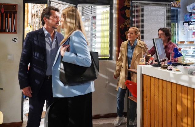 Em seguida, ele abre a porta e do outro lado está Júlia, vestida com um casaco. A dj pergunta se ele está sozinho e diz que tem uma prenda de casamento para ele. Assim, a gémea abre o casaco, revelando que está apenas de lingerie. Júlia começa a provocar Nelson, tentando beiá-lo, mas o PJ resiste. Quando parece que ele está prestes a ceder, ele afasta-a e diz-lhe que ela já fez demasiados estragos naquela família. Por fim, Júlia vai embora convencida de que ele está cheio de vontade.